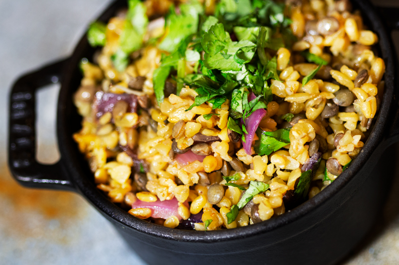 The Farmer's favourite grain with red onion, garlic and pine nuts